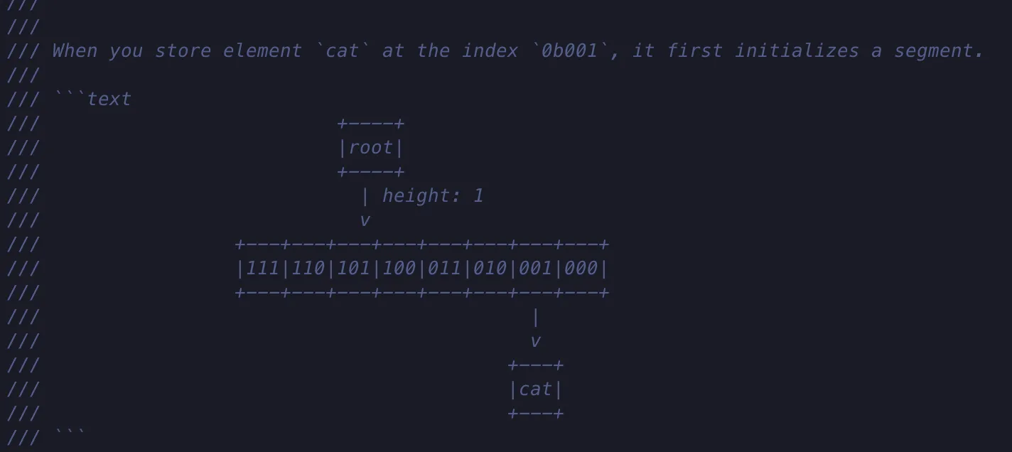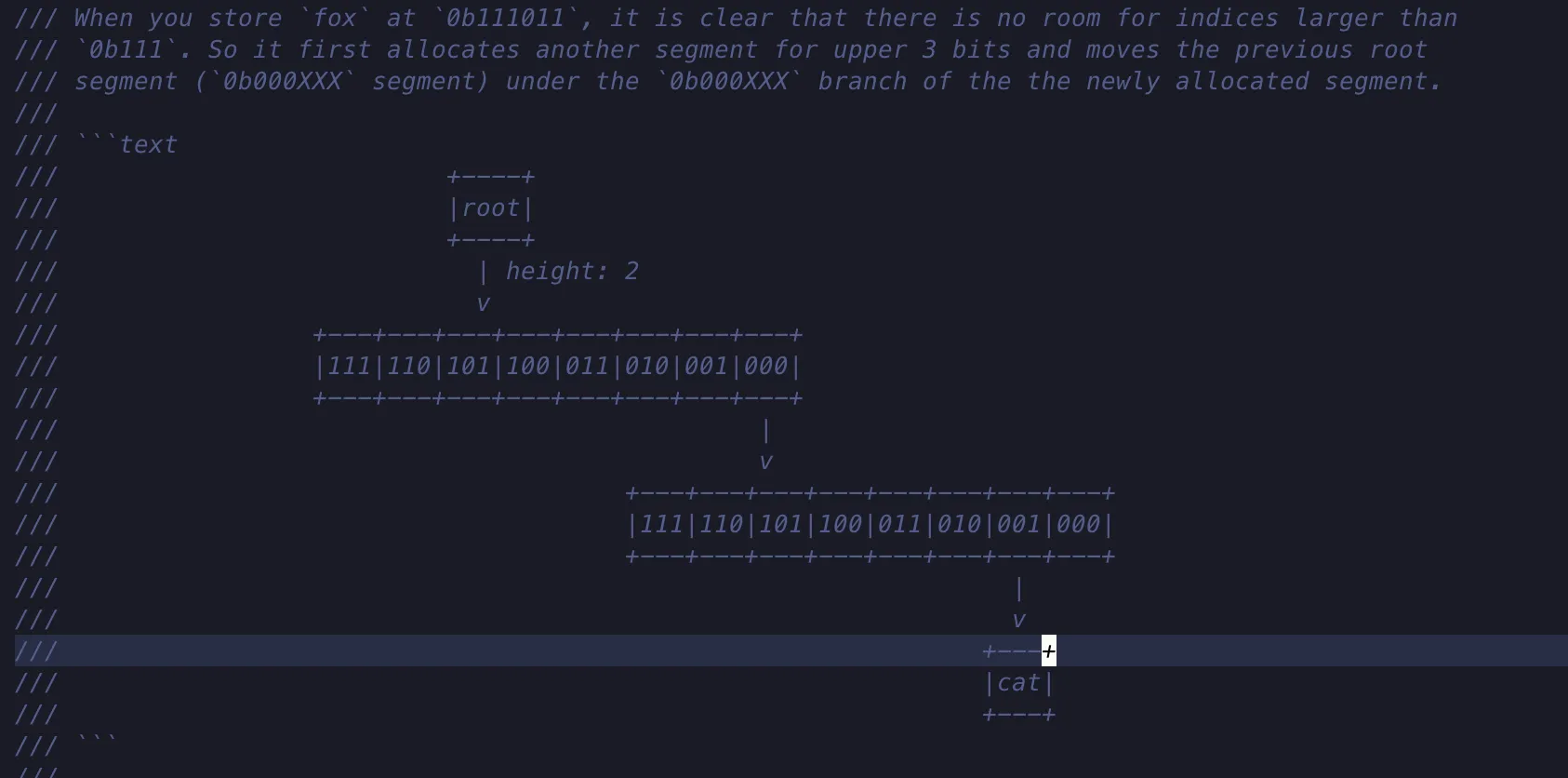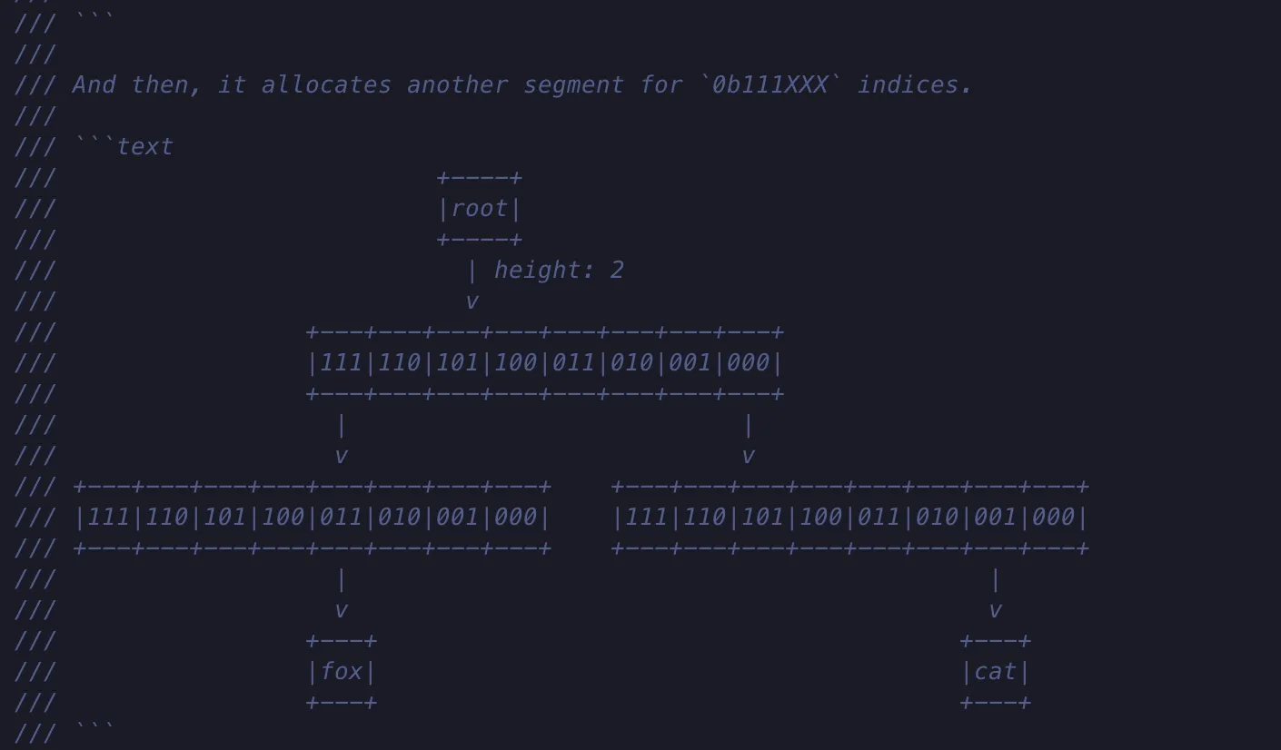 (As for why it is storing to 0, when an address is too large and the tree needs to increase its height, all of the previous nodes’ address must be smaller than the new node’s address, so that the new node’s address needs more bits to represent its value. Hence for all previous addresses, to extend bits without affecting their values, we need to add 0 before them.)