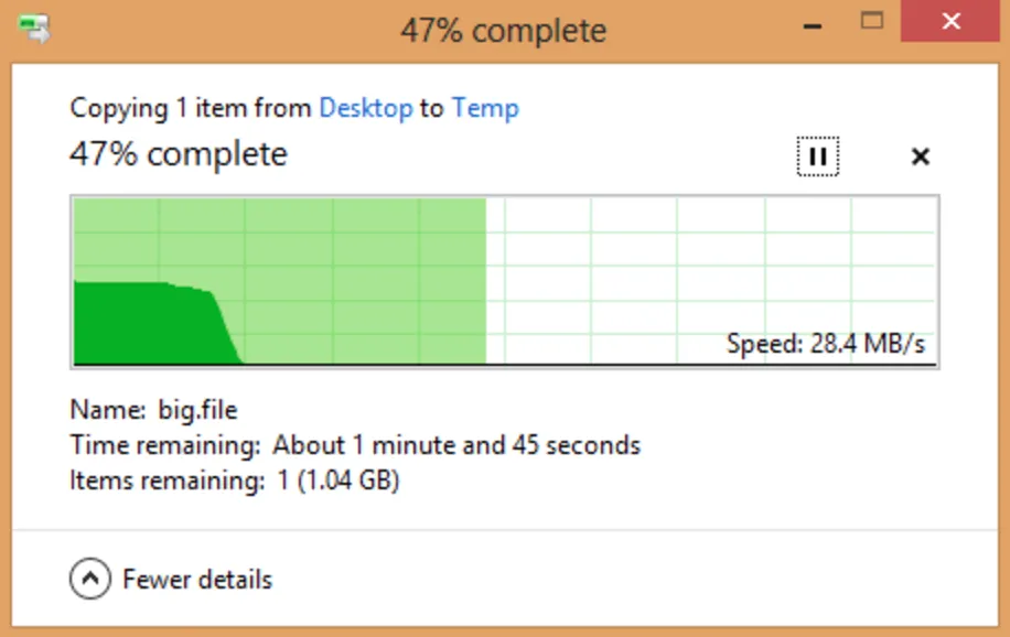 However, it takes lots of time to transfer a single file as the screenshots show. The script waits for a long time to download the file, and then waits for uploading. This approach only creates one connection for a single file, and it is very ineffective.