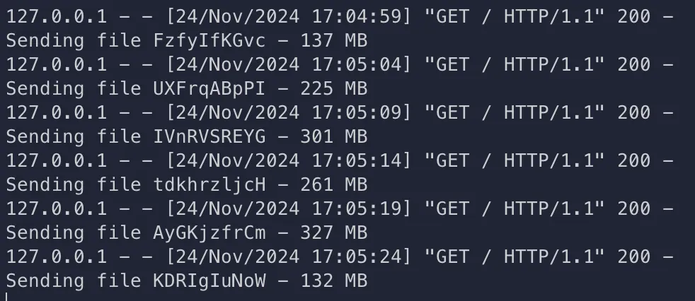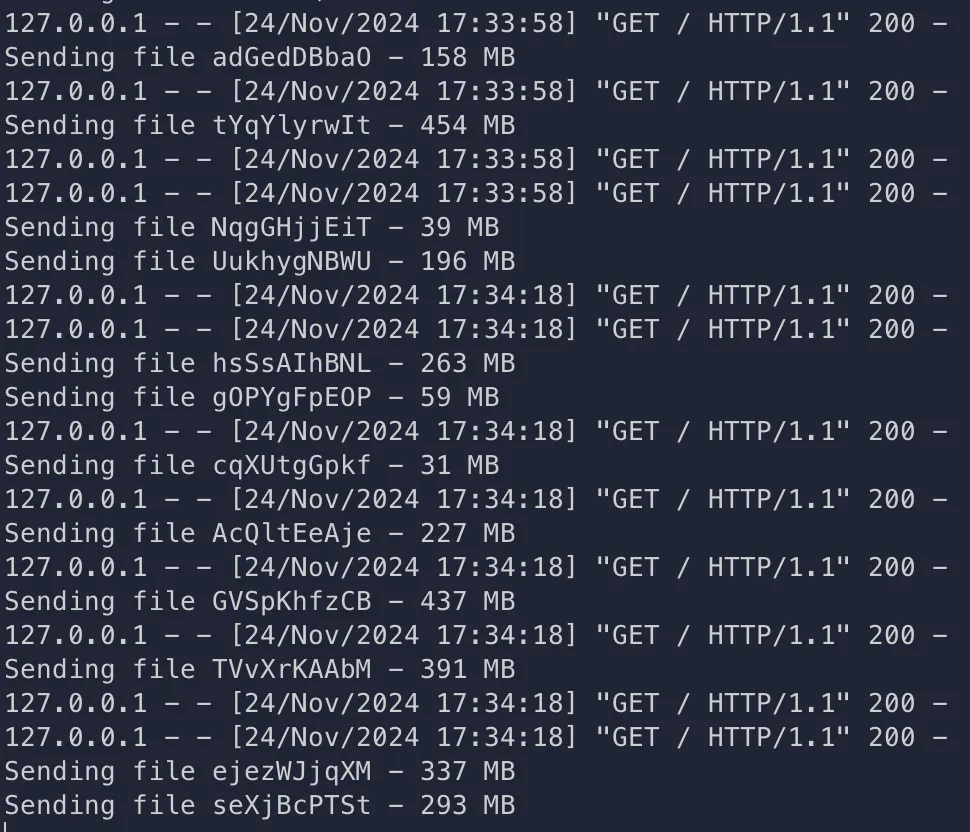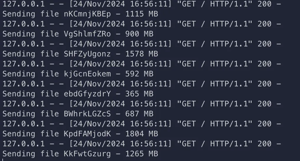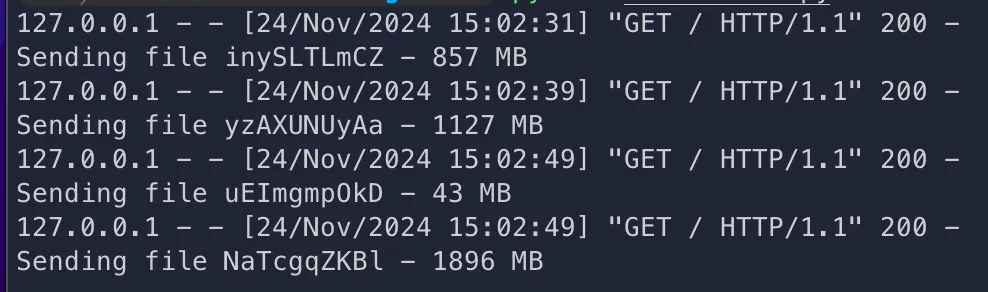 print(f"Sending file {filename} - {size // 1024 // 1024} MB")