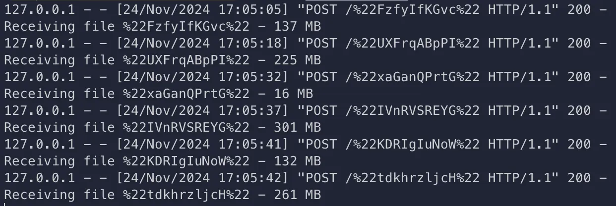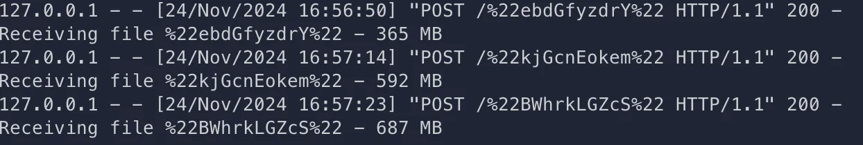 print(f"Receiving file {filename} - {size // 1024 // 1024} MB")