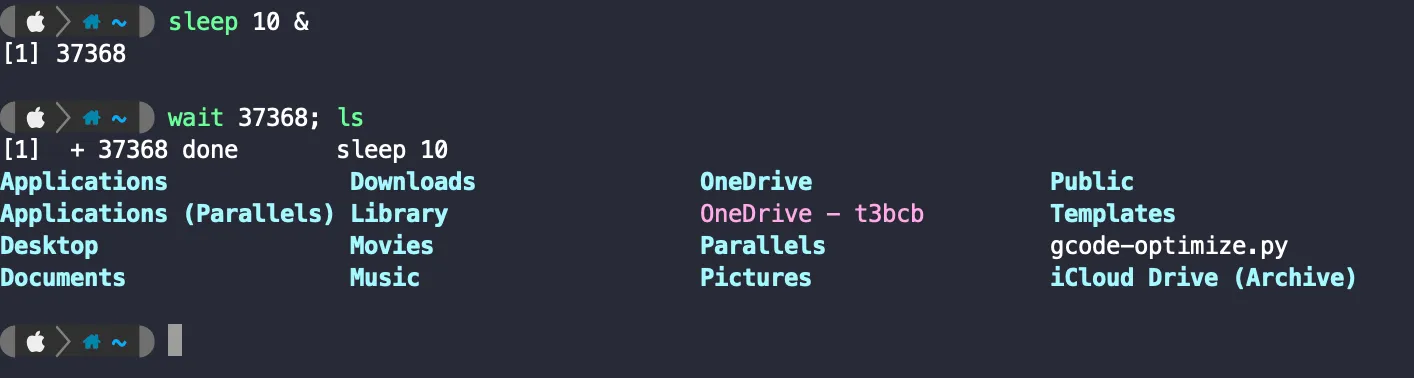 sleep 60 &. One way to achieve this is to use thewaitcommand. Try launching the sleep command and having anlswait until the background process finishes.
